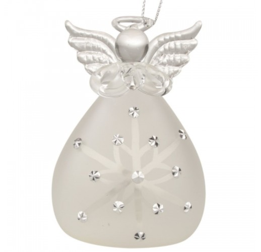 Anděl skleněný svítící LED 10 cm.