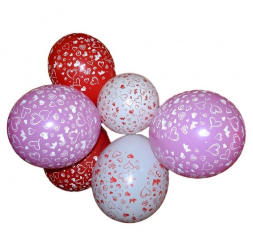 Nafukovací balonky kulaté s potiskem srdce.