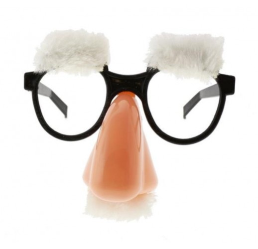 Karnevalové brýle které obsahují nos a knír s obočím.