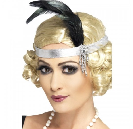 Retro čelenka s fialiovým peřím, která je univerzální velikostí a doplněna pružnou gumičkou kolem hlavy.