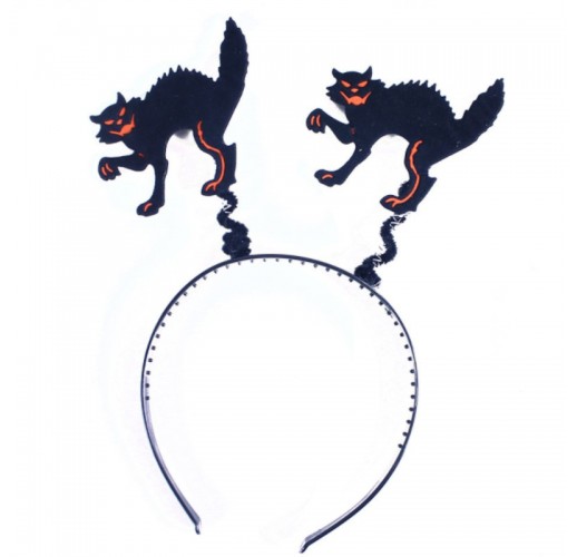 Tato černo-oranžová čelenka je zdobena kočkami na pružinách.