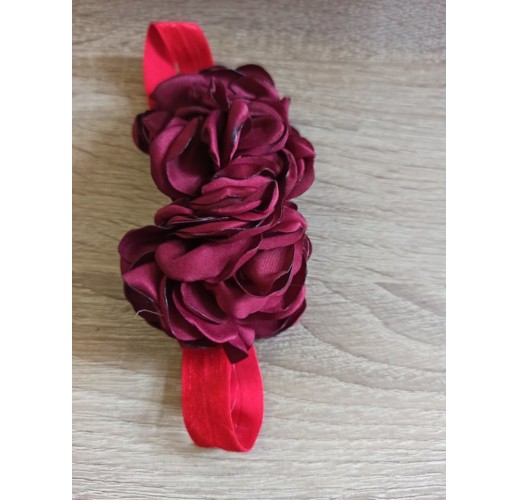 Čelenka pro miminka větší s květy bordó