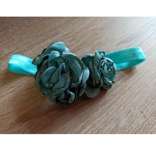 Čelenka pro miminka větší s květy tmavě zelená