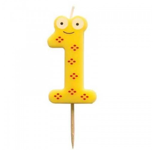 Veselá dortová svíčka ve tvaru čísla 1. Velikost: 6 cm.