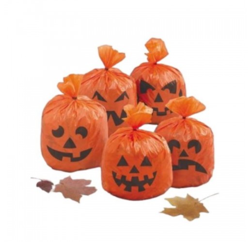 Sáčky v podobě halloweenské dýně můžete naplnit listím nebo zmačkaným papírem,uzavřete a zavěste třeba na strašidelnou suchou větev.