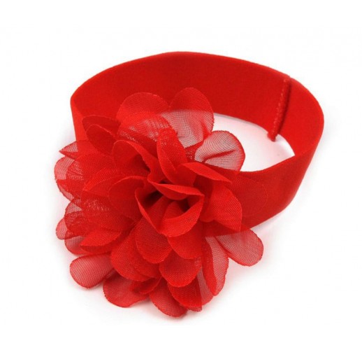 Dětská elastická čelenka do vlasů s květem červená