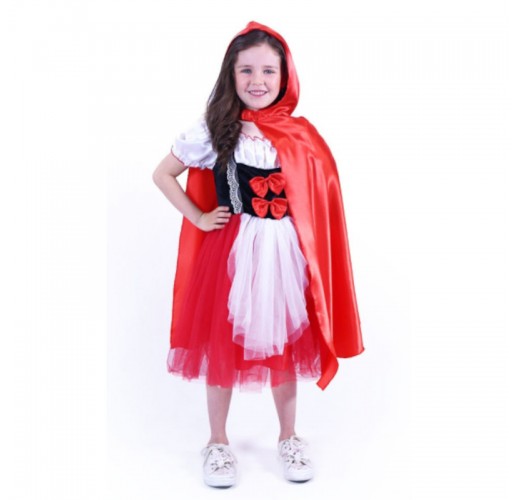 Stylové saténové šatičky s tylem jsou doplněny o červený plášť s kapucí.