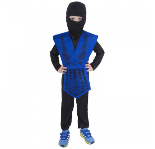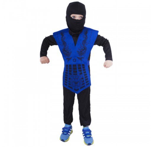 Karnevalový kostým NINJA ve velikosti S je určen pro chlapce ve věkovém rozmezí 4-6 let (110-116 cm).