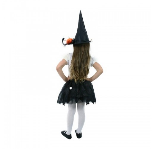 Kostýmek černé barvy zdobený dekorem pavučinky je určen pro holčičky ve věkovém rozmezí 3-7 let.