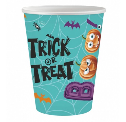 Papírové kelímky na halloweenský večer s motivem dětského Halloweenu.