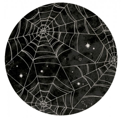 Papírové talíře na Halloweenský večer s motivem pavouků a pavučin.