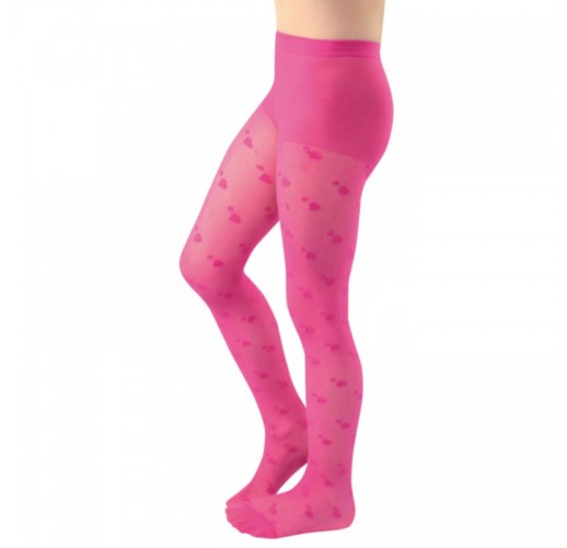 Bílé dívčí vzorované punčochové kalhoty Miki jsou silonky přímo posety srdíčky.