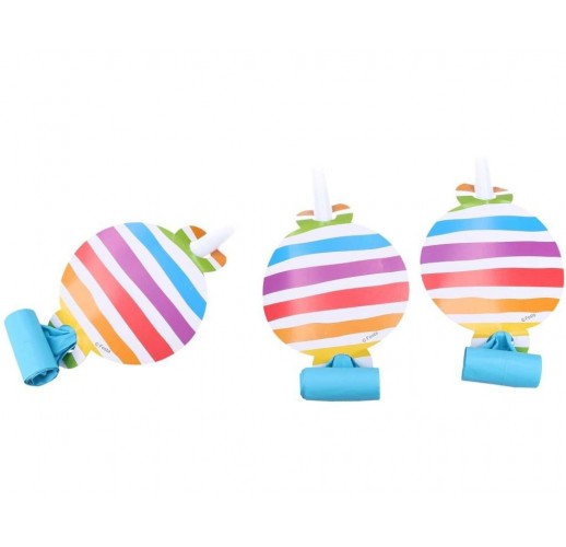 Papírové party frkačky s plastovým náústkem, s motivem Duhy.