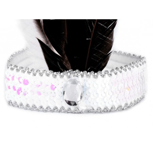 Karnevalová čelenka s peřím se skvěle hodí ke kostýmu z 30. let, kdy se tento doplněk hojně používal.
