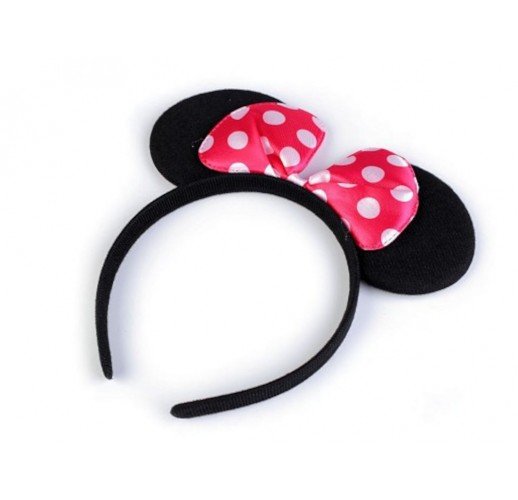 Čelenku zdobí červená puntíkovaná mašle.