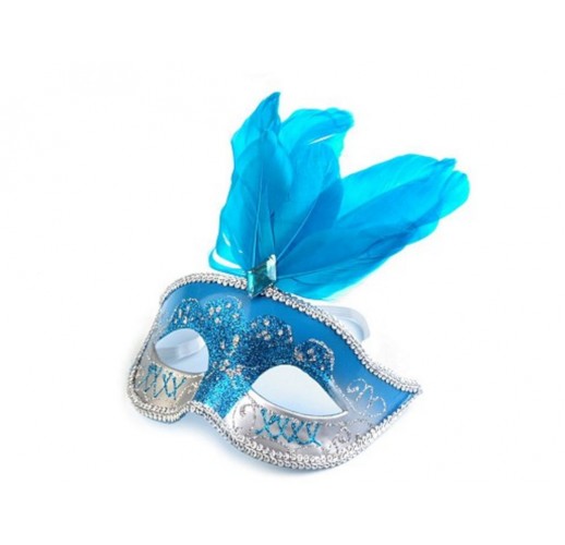 Kvalitní plast, ze kterého je maska vyrobena, je poset glitry. Barva glitrů odpovídá barvě peří.