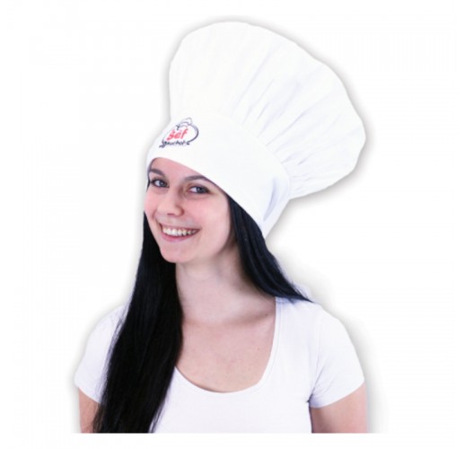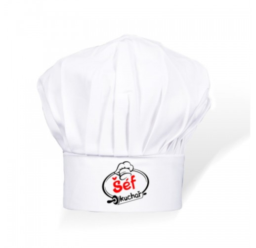 Bílá kuchařská čepice pro dospělé s nápisem "Šéf kuchař" je praktickým doplňkem do každé kuchyně.