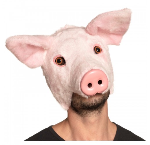 Plyšová karnevalová polomaska prase, plyš nalepený na plastu s pěnovou gumou.