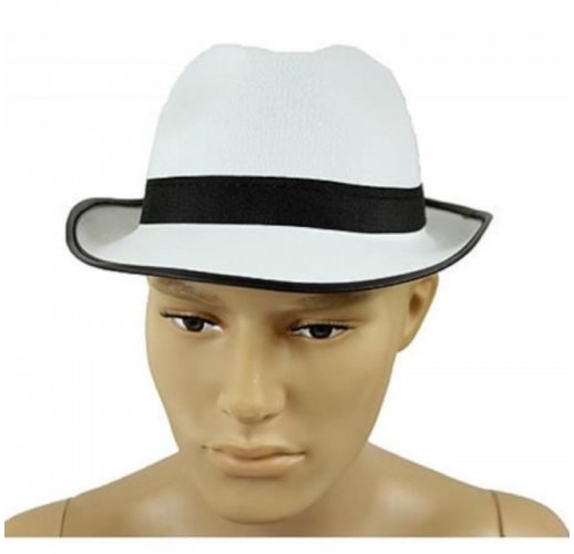 Mafiánský klobouk bílý, s černým lemováním a černou stuhou