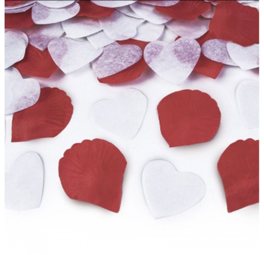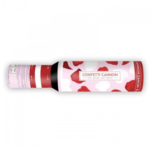 Vystřelující konfety, červené lístky růže a bílá srdíčka. balení má 30 cm.