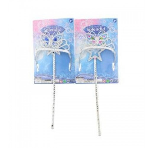 Plastová korunka s žezlem o délce cca 34 cm pro malé princezny. Korunka je připevněna na čelence. Věk 3+ Cena uvedena za 1 kus!