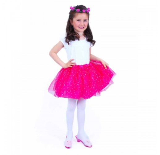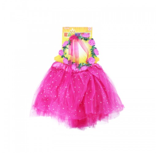 Sukně tutu pro všechny malé parádnice! Sukýnka růžové barvy je určena pro holčičky ve věkovém rozmezí 3-10 let (104-146 cm), obvod pasu 48-80 cm. Nadýchaná tylová suknička je zdobena saténovou gumou a zdobena flitry, součástí je půvabný věneček z růžových květinek.