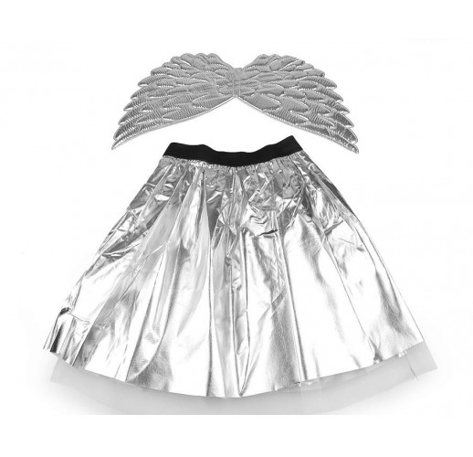 Kostým anděla se skládá ze sukýnky s metalickým efektem, která je podšitá tylem a křídel, která jsou prošitá a nasazují se pomocí gumiček.