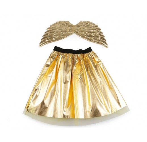 Kostým anděla se skládá ze sukýnky s metalickým efektem, která je podšitá tylem a křídel, která jsou prošitá a nasazují se pomocí gumiček.