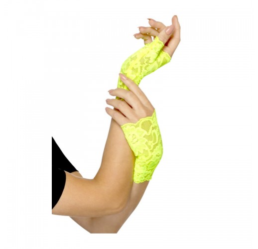 Krátké rukavice bez prstů v neonově zelené barvě poslouží jako doplněk ke kostýmu na párty ve stylu 80. let nebo tanečnice. Pružný materiál. Lze je prát v ruce. Univerzální velikost. Materiál: 100% nylon.