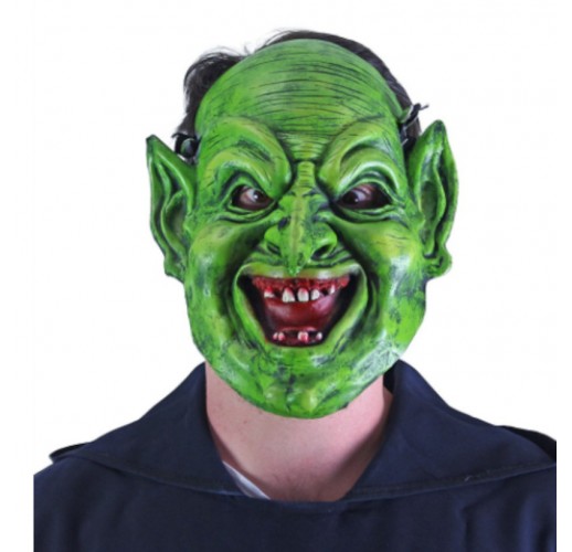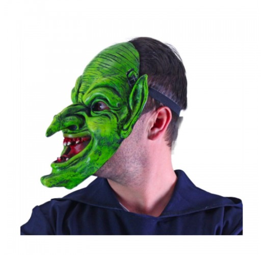 Děsivá maska čaroděje v zelené barvě je parádním doplňkem ke kostýmu.