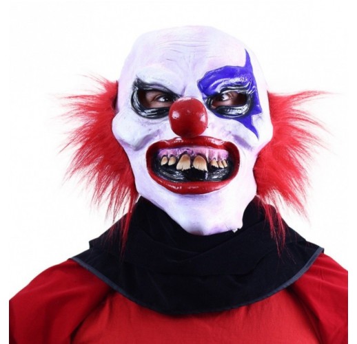 Hrozivá celoobličejová latexová maska klauna.