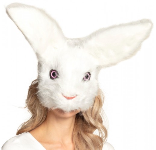Plyšová karnevalová polomaska vlka, plyš nalepený na plastu s pěnovou gumou.