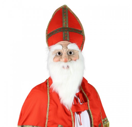 Karnevalová maska Mikuláš je doplněna bílými vousy a obočím.