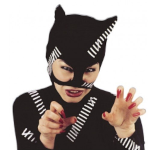 Kukla kočky,pružná látková, ke kostýmu kočičí ženy (Catwoman).