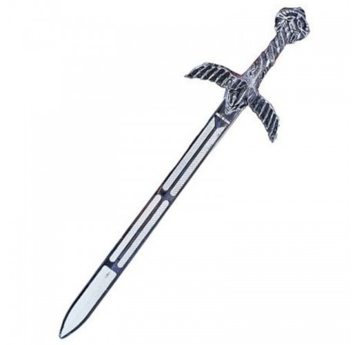 Meč o délce 62 cm je vyroben z PVC a je dekorován stříbrnými vzory.