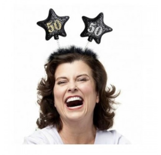 Party čelenka v červené barvě s hvězdami vhodná k oslavě 50. narozenin či výročí.