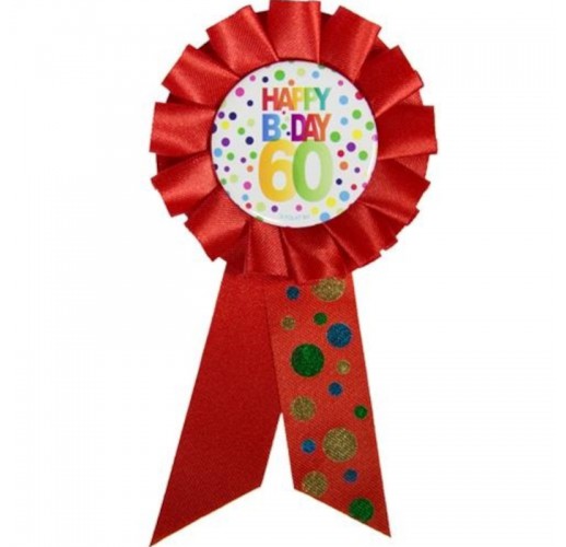 Barevný narozeninový odznak s nápisem HAPPY B DAY 60 pro jasné rozlišení oslavence od ostatních hostů party.