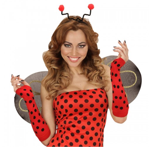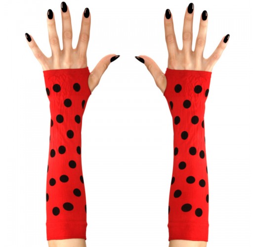 Návleky beruška na ruce, bez prstů, červené s černými tečkami.