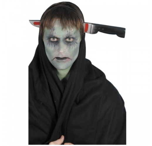 Nůž j epřipebněný na čelence.
