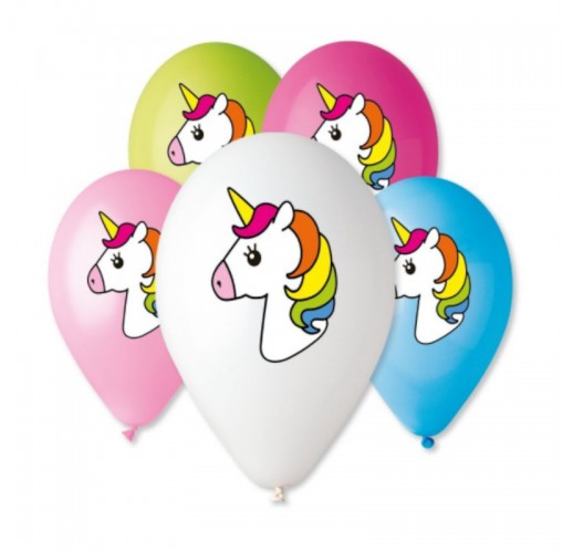 Nafukovací balónky s potiskem veselých barevných jednorožců.