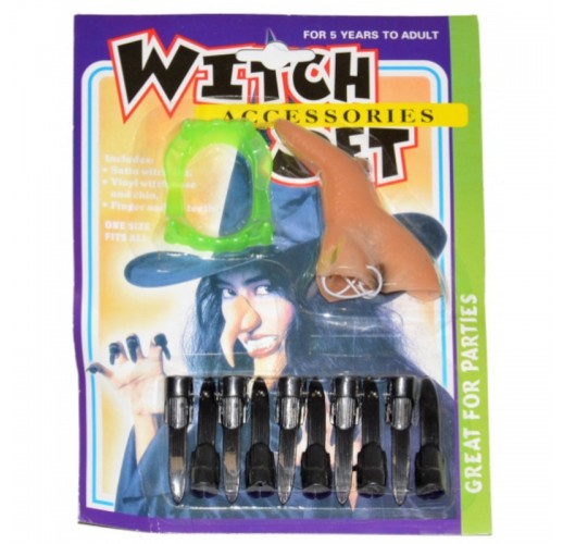 S těmito násadami na prsty s dlouhými nehty, čarodějnickým nosem a zuby můžete strašit děti na pohádkové akci, vzít si je můžete na slet čarodějnic nebo na halloweenskou párty.