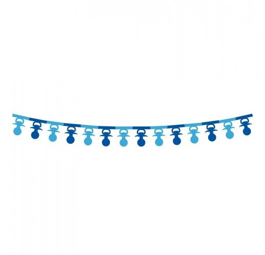 Papírová girlanda znázorňující dudlíky v modré barvě.