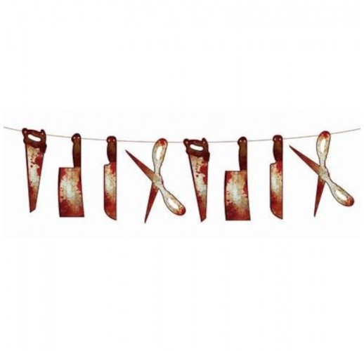 Vlaječková girlanda Halloween s krvavým nářadím vhodná pro výzdobu místnosti na halloweenský večer.