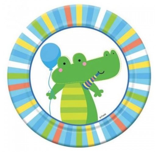 Krásný papírový talířek s motivem krokodýla nemůže chybět na vaší oslavě.