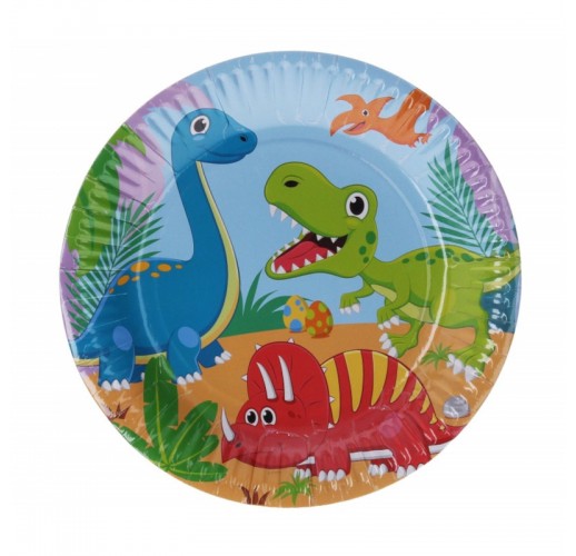 Papírové párty tácky dinosauři. Balení obsahuje 6 ks. Průměr tácku je 23,5 cm.
