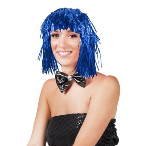 Modrá lesklá staniolová paruka pro tanečnice, uličnice i sportovní fanoušky a fanynky.