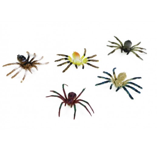 V sadě najdeš 5 kusů různých pestrobarevných pavouků.