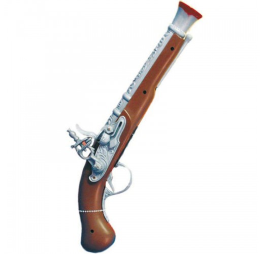 Plastová pirátská pistole dlouhá přes 30 cm.