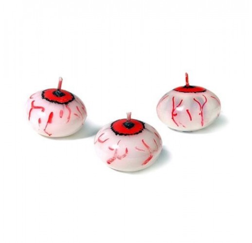 Plovoucí svíčka, matná, bílá s obrázkem oka, velikost 4 centimetry.