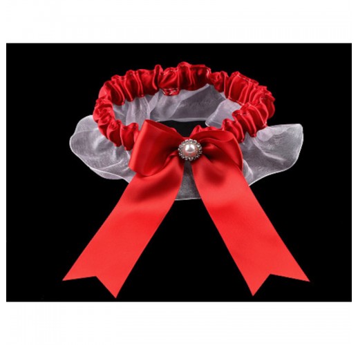 Svatební podvazek s velkou mašlí dobře pruží, příjemně se nosí.